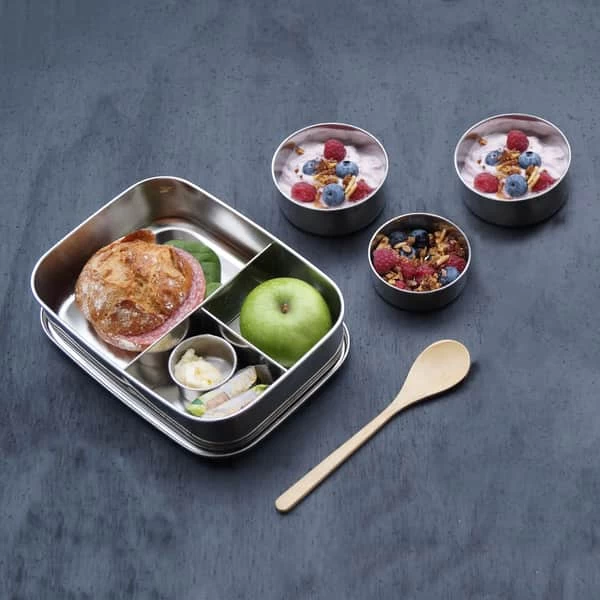 Nedbring dit forbrug af engangsemballage og plastik ved at bruge Bento Rounds fra Yummii Yummii som madkasse – boksene er perfekte til dressing, sojasovs, humus, guacamole honning eller granola.