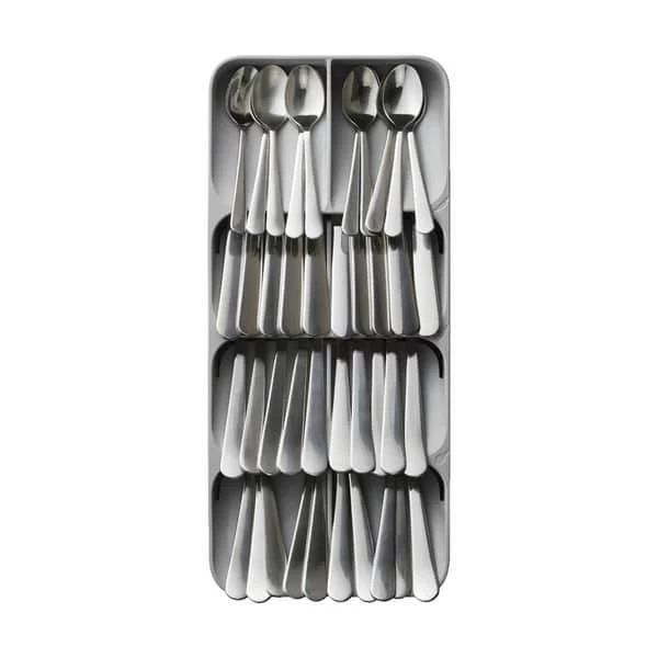 Bestikbakken fra Joseph Joseph giver dig mulighed for at opbevare op til 48 stykker bestik. De smarte vinklede rum udnytter pladsen i skuffen bedre end en almindelig bestikbakke.