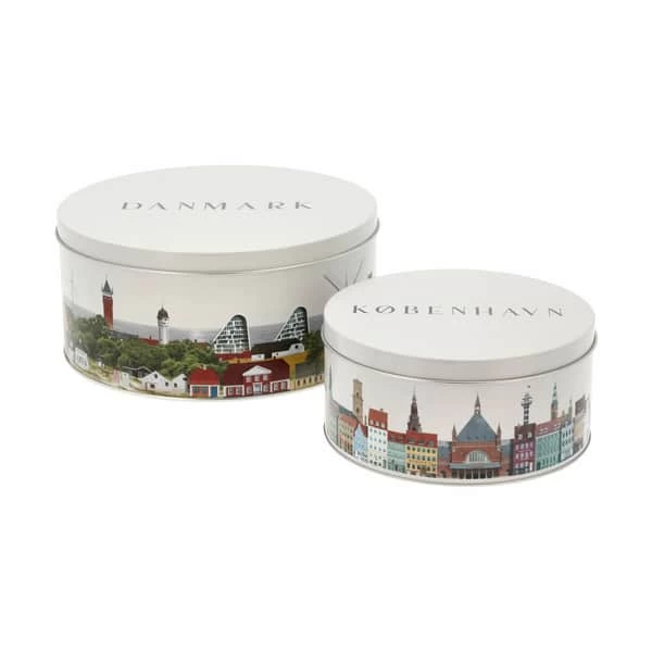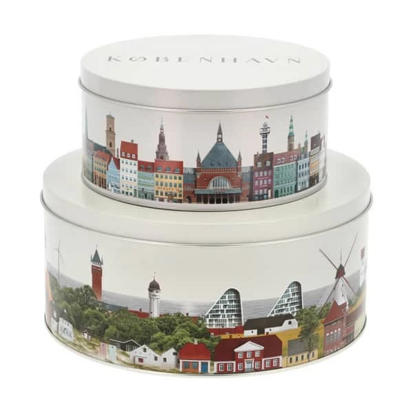 Elsker du at bage lækre cookies eller småkager? Så er dette fine kagedåsesæt bestående af to runde dåser med danske motiver lige noget for dig.