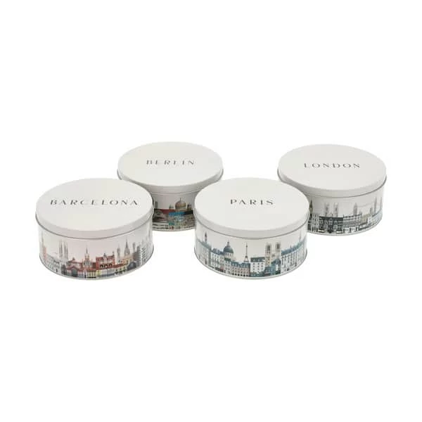 Elsker du at bage lækre cookies eller småkager? Så er dette fine runde kagedåsesæt med by-motiver, måske noget for dig?