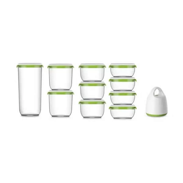 Det smarte opbevaringssæt med vakuumsystem er ideel til opbevaring af madvarer eller fødevarer. Vakuumsystemet sørger for, at maden holder sig frisk i længere tid – helt op til 5 gange længere! Med længere holdbarhed har du derfor mulighed for at spare lidt på pengepungen og samtidig minimere madspild.