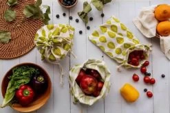 Desuden er papiret lavet af GOTS økologisk bomuld imprægneret med bivoks, hvilket gør det 100% naturligt, økologisk og plastikfrit, som er bionedbrydeligt og komposterbart, så du med god samvittighed, og uden frygt for uønsket kemi kan indpakke din mad.
